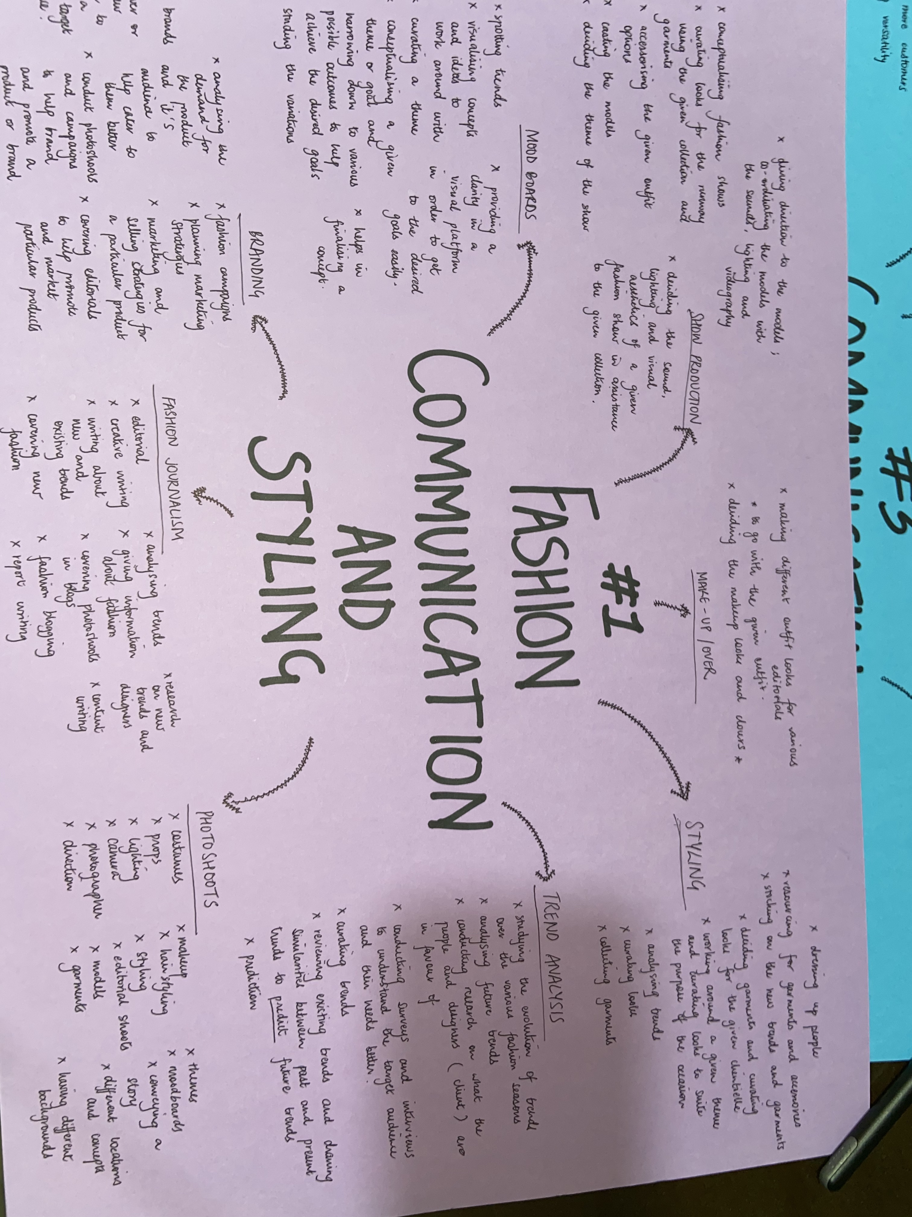 12th March, 2020 – Ms. Kanika Sharma – In today’s class, we brought the three mind maps we had made, based on our understandings of the three discipline preferences we had, mine being 1-Fashion Communication and Styling, 2-Fashion Design, and 3-Communication Design.